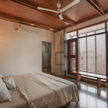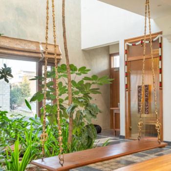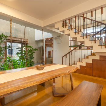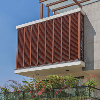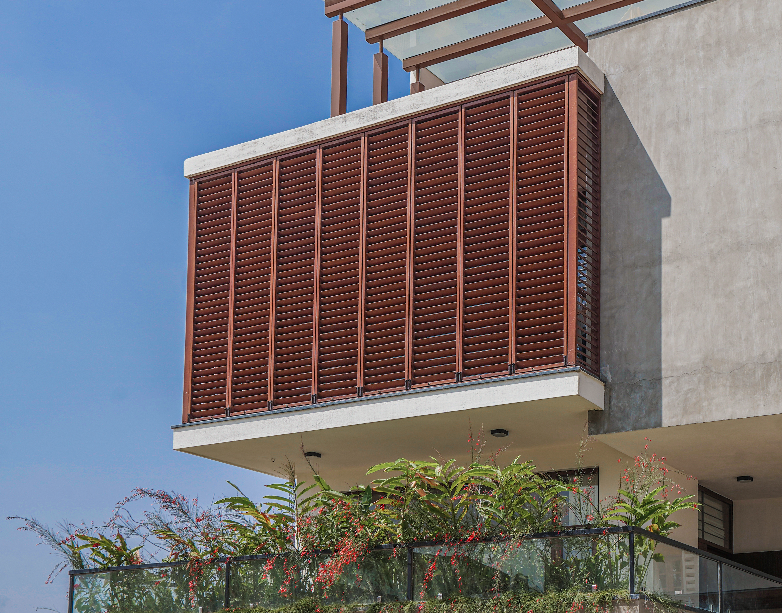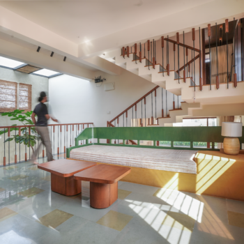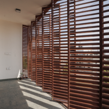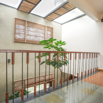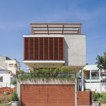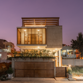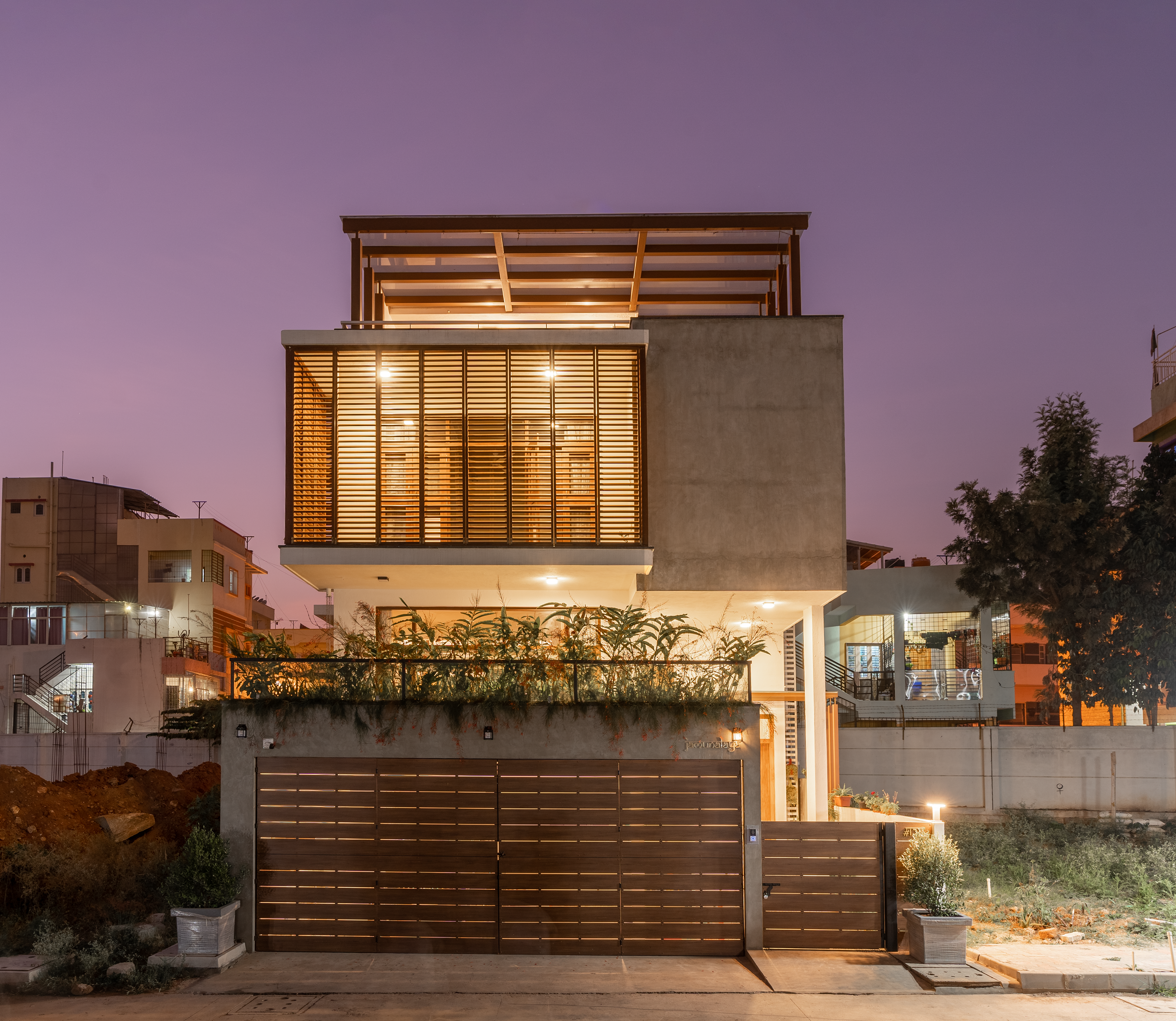 Set on a 30x55 ft plot, this thoughtfully designed home strikes a balance between modern living and Indian sensibilities. The layout brings nature into everyday life, with a serene indoor garden placed beside the dining area—creating a peaceful, light-filled space for family gatherings. Above the car park, a mezzanine-level living room offers a sense of privacy while providing elevated views of the surroundings. One of the home’s unique features is the rooftop garden above the entry ramp—a quiet green corner that transforms a functional space into a refreshing retreat. The exterior embraces a clean, minimalist style, subtly enriched with Indian elements that give it cultural depth. Vertical slatted screens on the facade not only provide privacy but also play with light and shadow, adding texture and warmth to the overall look. Designed to feel both open and private, the home reflects the client’s desire for a space that’s modern, functional, and in harmony with nature and tradition.