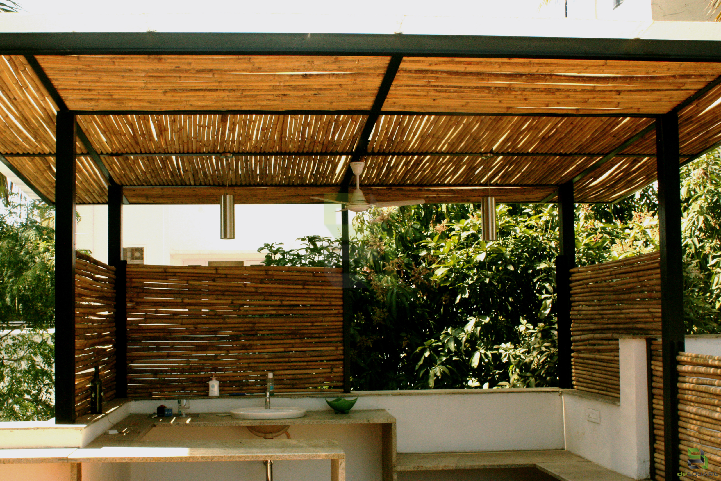 To begin with, there was a small structure at site. The idea was to fulfil the client’s needs without demolishing the existing small structure. So the building was reprogrammed and remodelled by making changes inside and building around it. Inner walls were removed and spaces were connected for visual continuity. Importance was given to green spaces and every space has its own view to a garden. No tree has been cut, in fact it’s been a part of the design itself.
