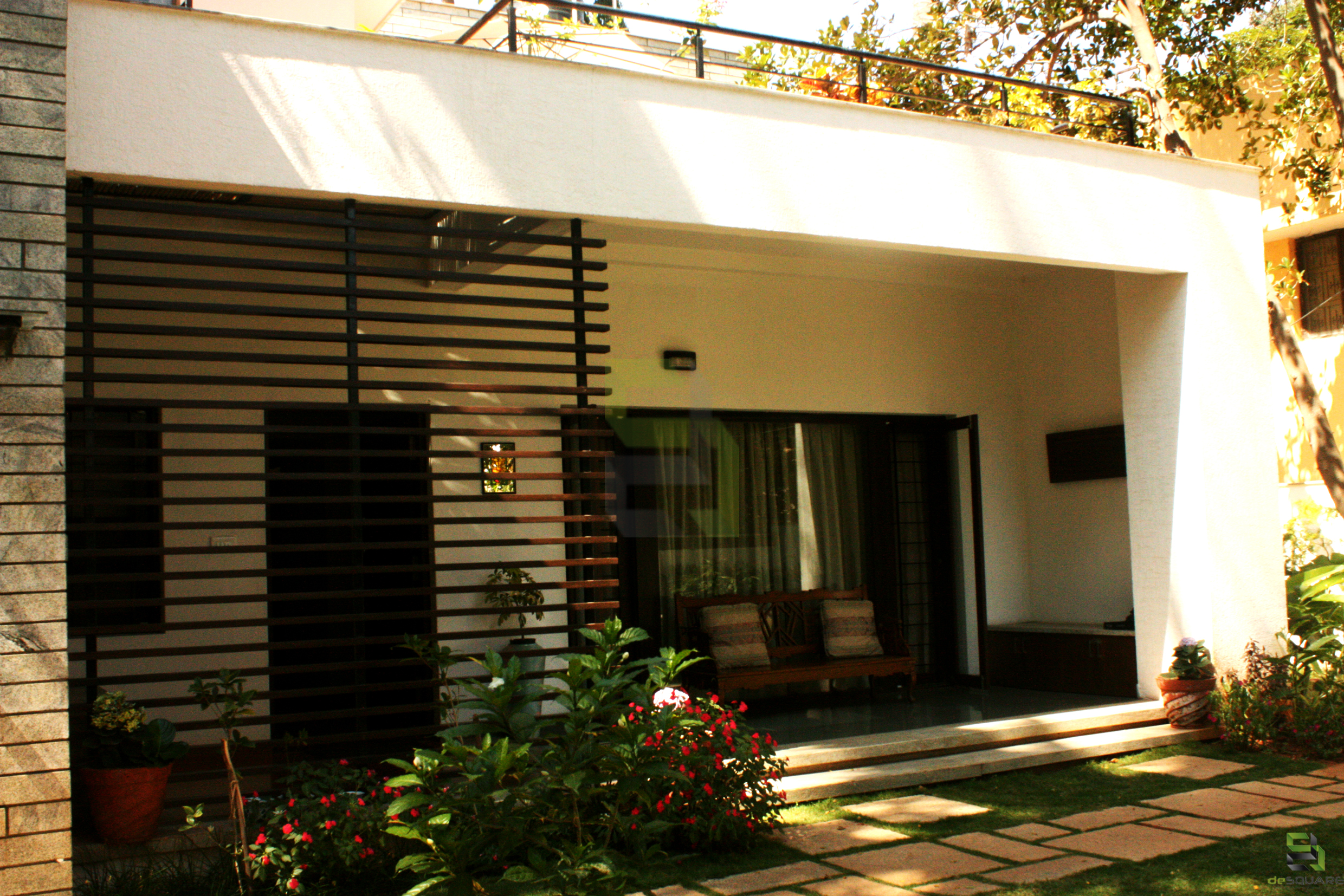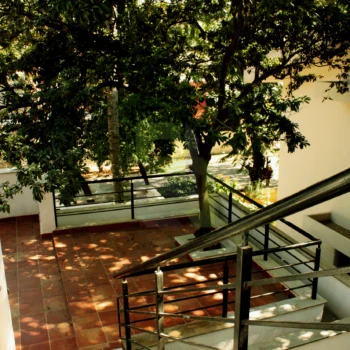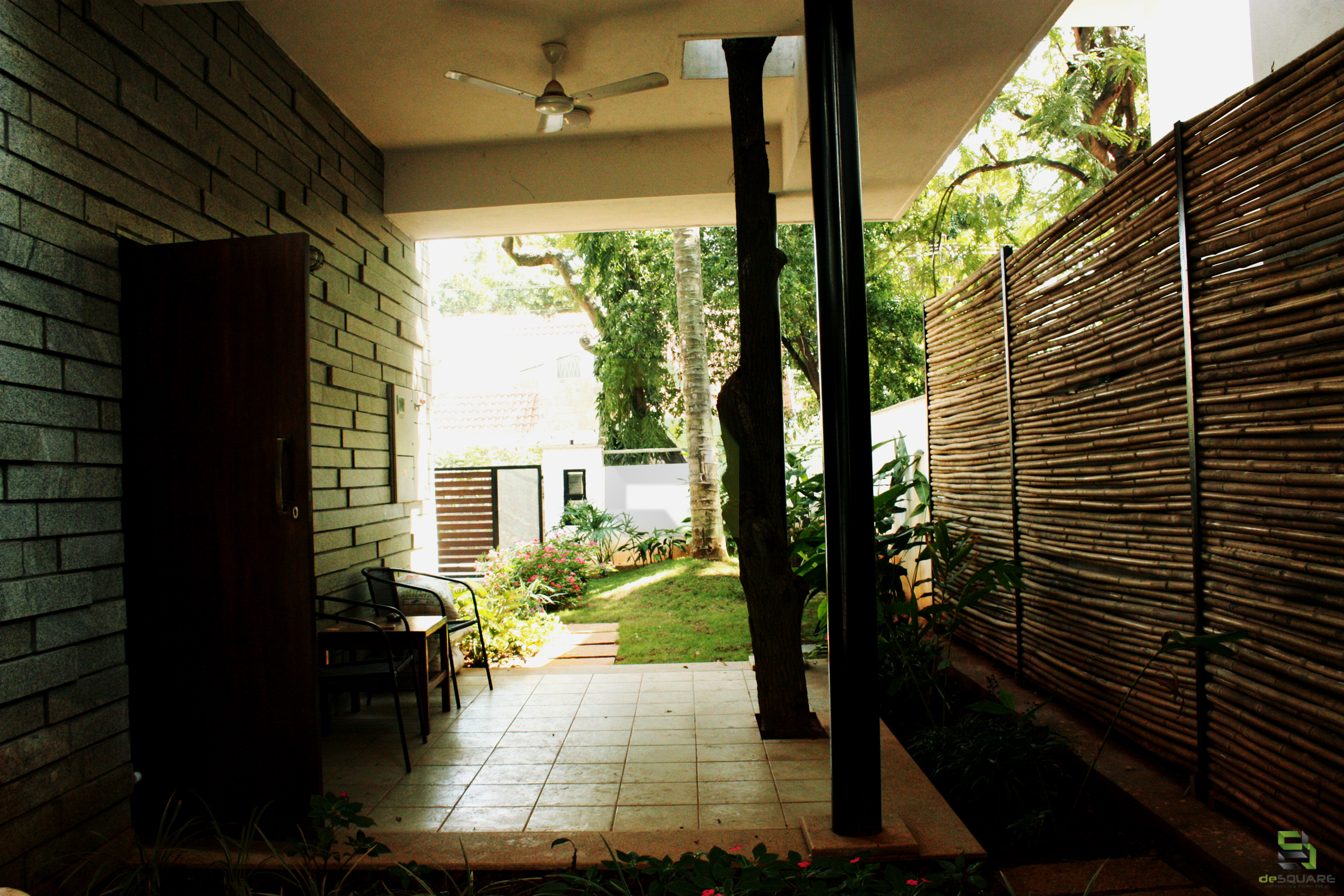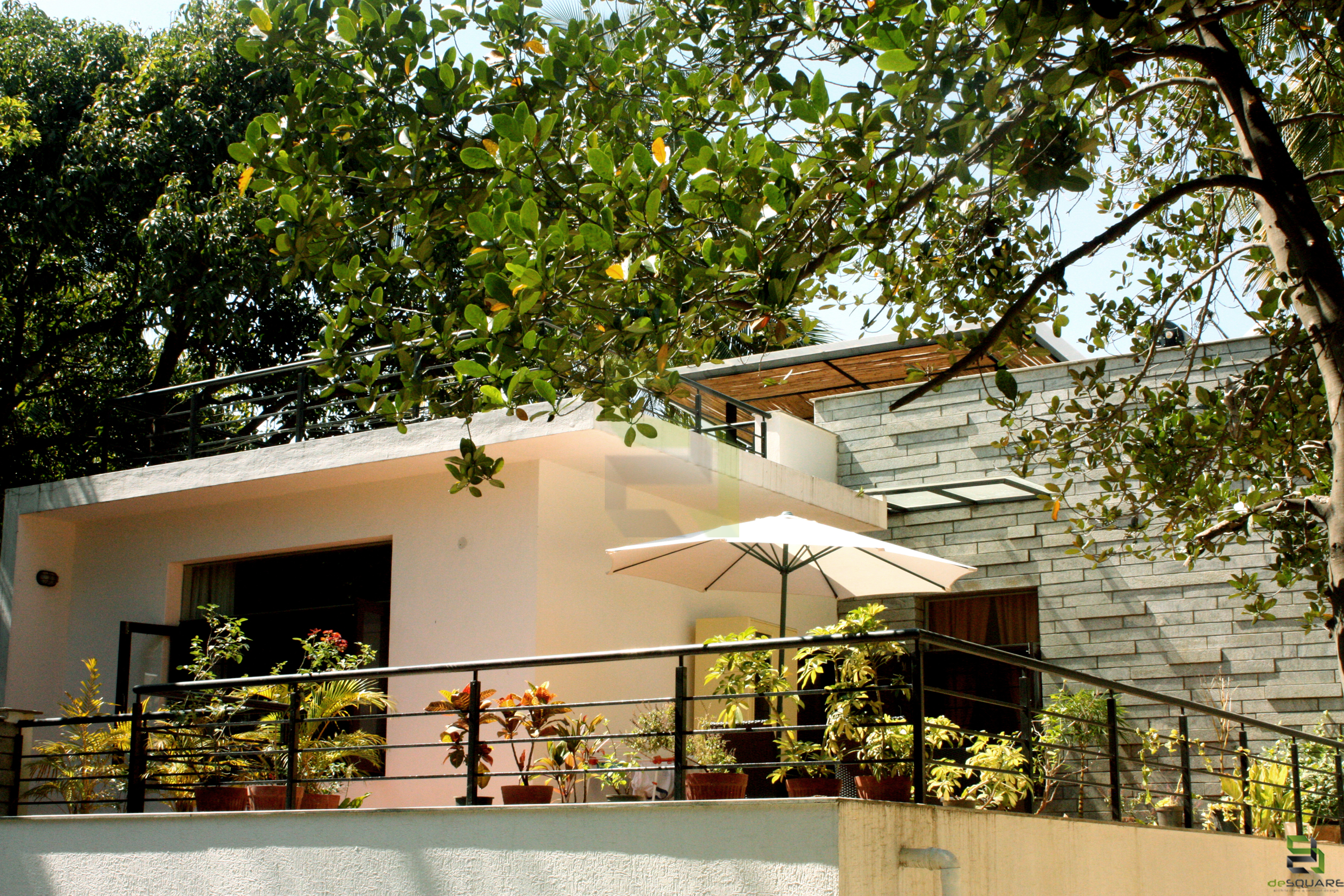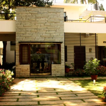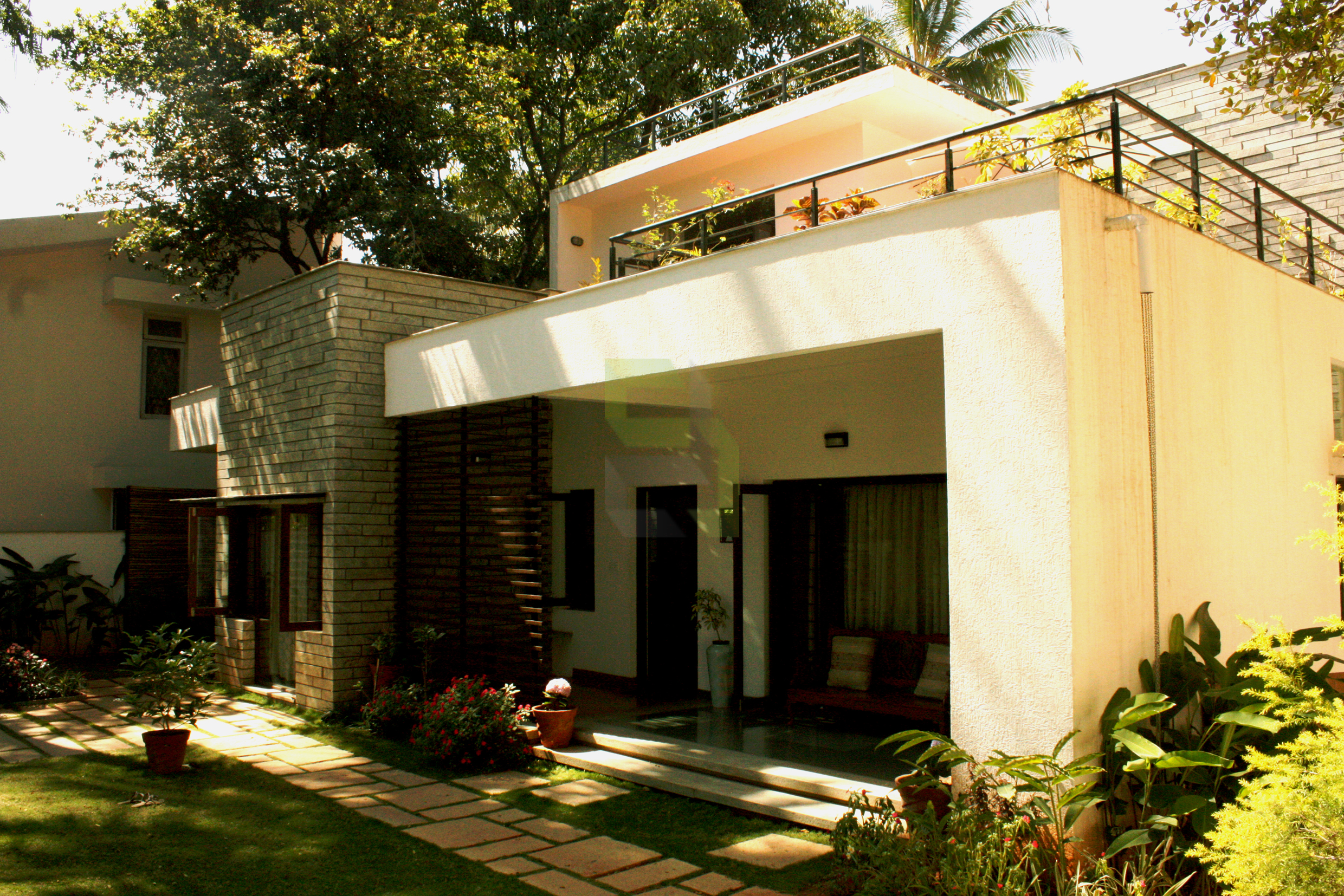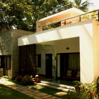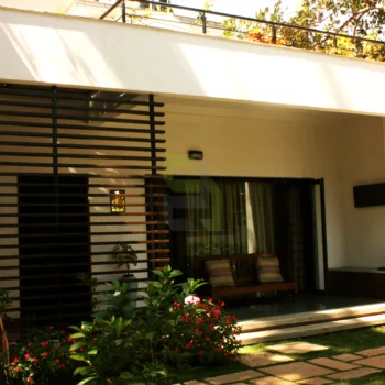 To begin with, there was a small structure at site. The idea was to fulfil the client’s needs without demolishing the existing small structure. So the building was reprogrammed and remodelled by making changes inside and building around it. Inner walls were removed and spaces were connected for visual continuity. Importance was given to green spaces and every space has its own view to a garden. No tree has been cut, in fact it’s been a part of the design itself.